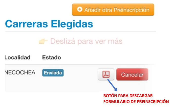 - Enviar la Preinscripción. Tené en cuenta que el sistema permite el envío de la Preinscripción a partir de la fecha asignada.