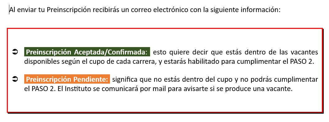 • Enviar la Preinscripción. Tené en cuenta que el sistema permite el envío de la Preinscripción a partir de la fecha asignada.