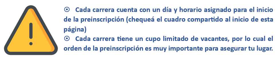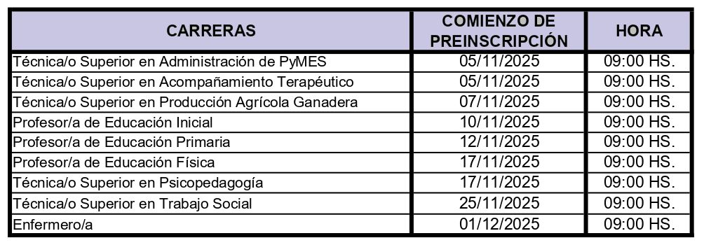 El procedimiento de pre inscripción será a través del sistema informático SIU GUARANÍ. Las carreras autorizadas para el ciclo lectivo 2026 son: